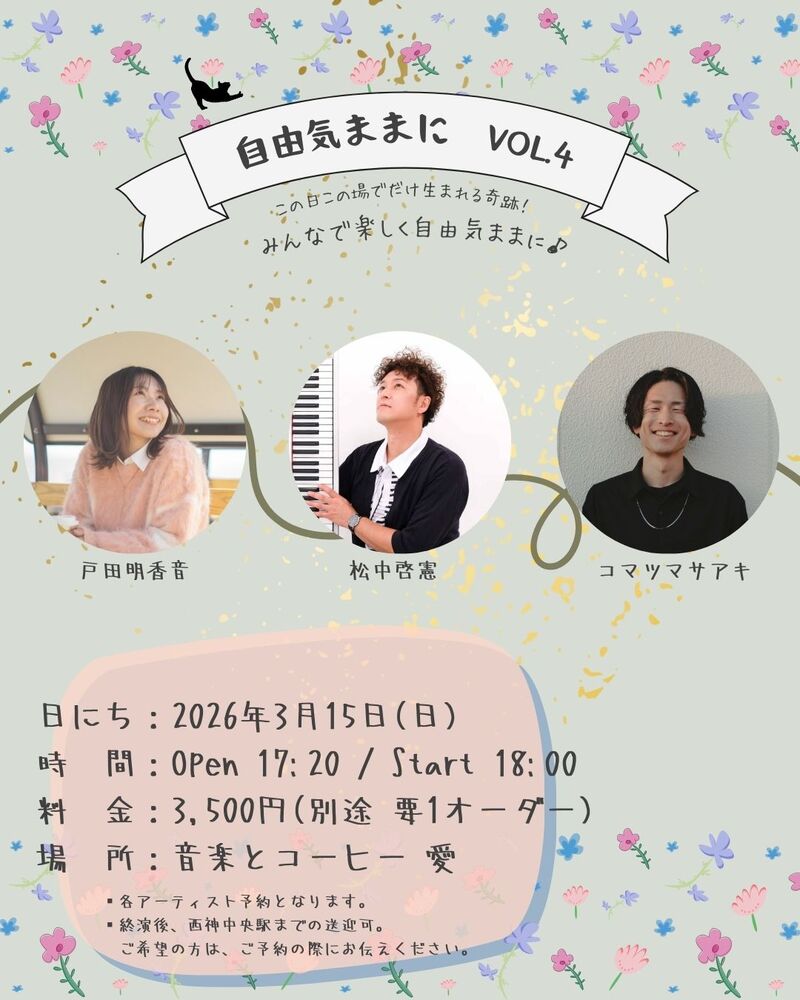 各アーティスト予約となりますが、コマツマサアキと戸田明香音は共通申込みページからのご予約となります!
